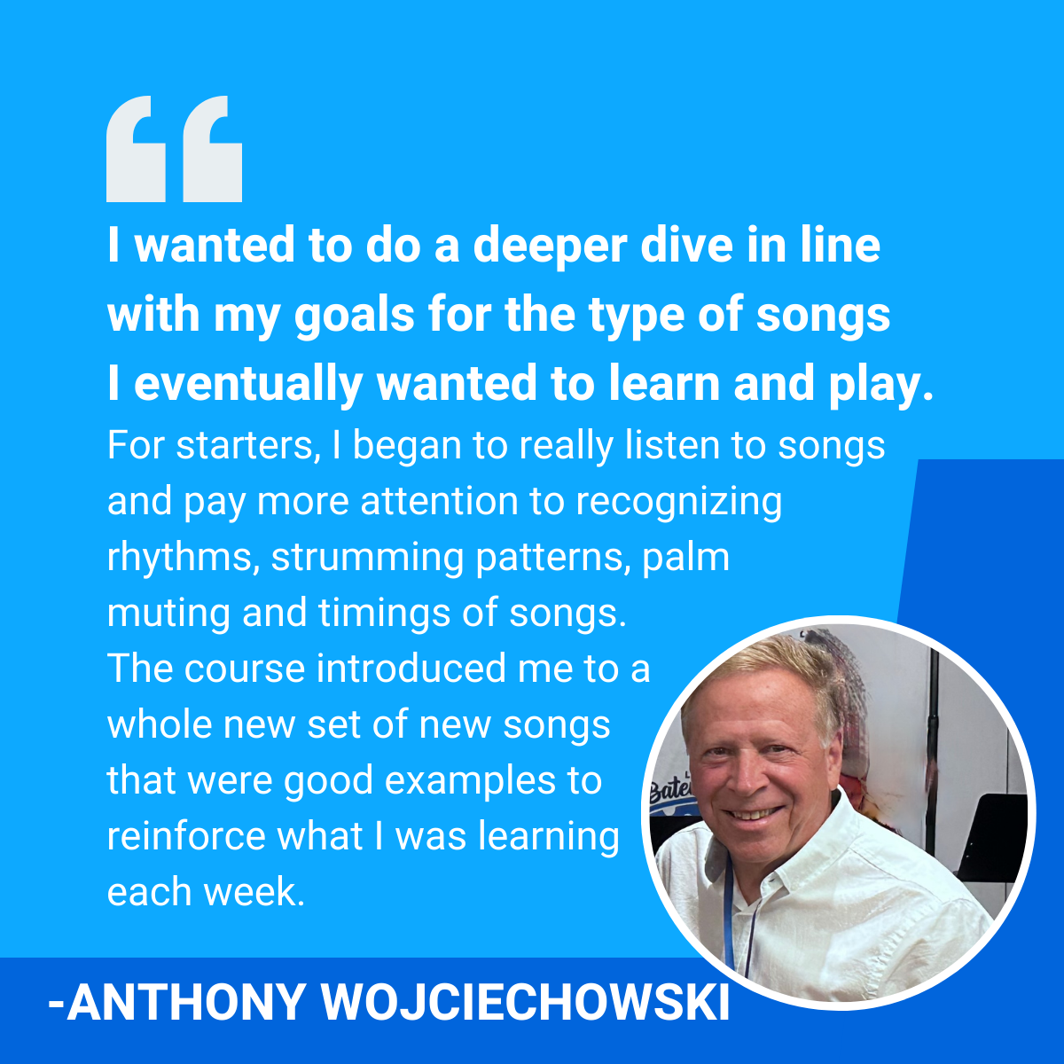 Created one of the most popular online courses specifically focused on rhythm, timing, and strumming